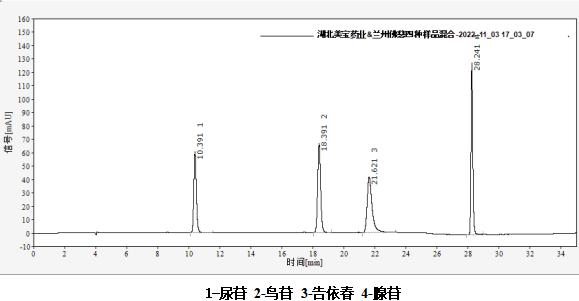 中藥_UV254nm_SinoPak BEH AQ-C18 5μm_尿苷、鳥苷、腺苷、告依春