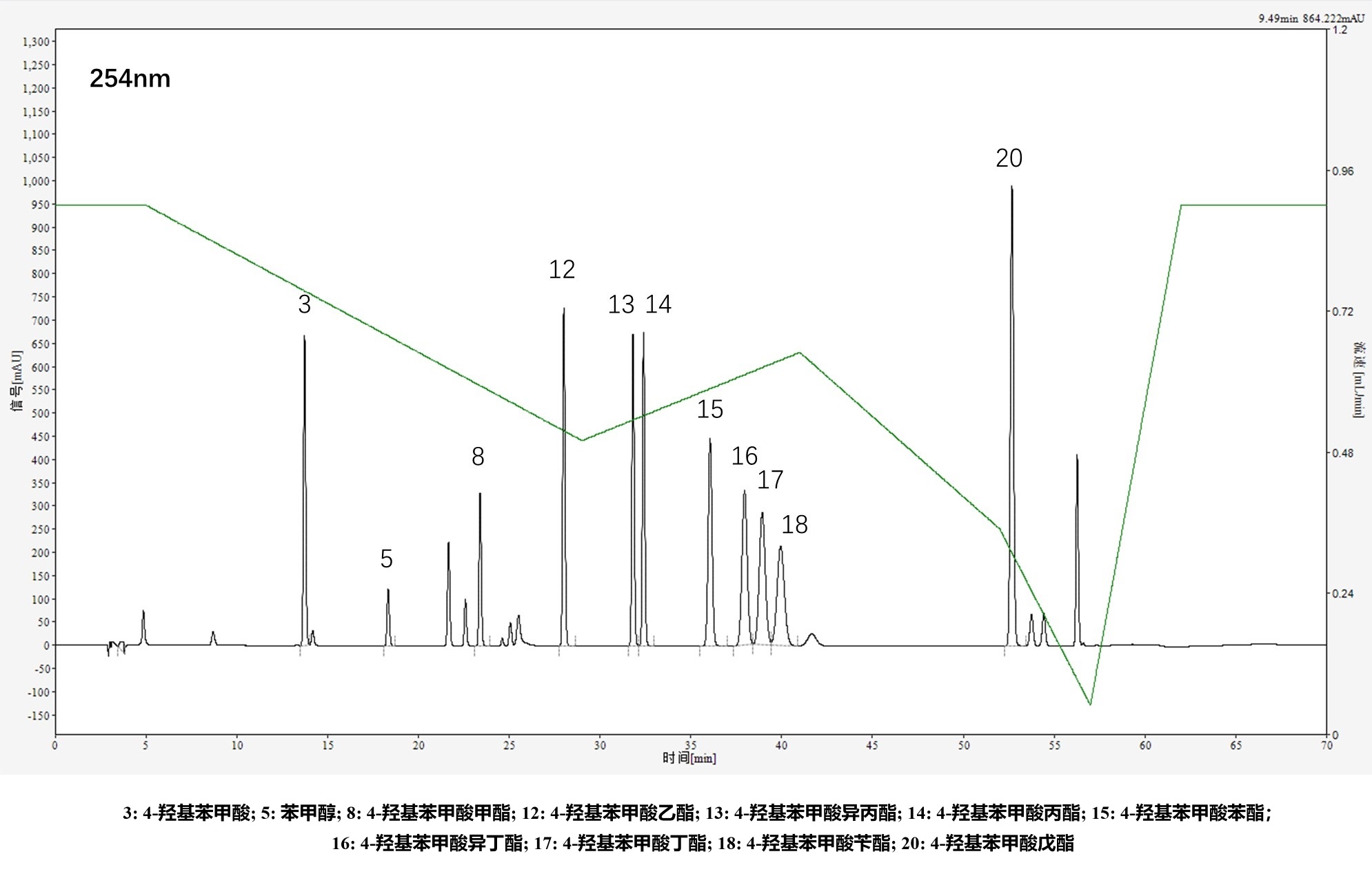 流動(dòng)相A:水(0.12%磷酸) 流動(dòng)相B:乙腈,梯度洗脫