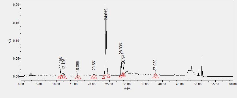流動相A:甲醇;流動相B:0.1%甲酸溶液,梯度洗脫