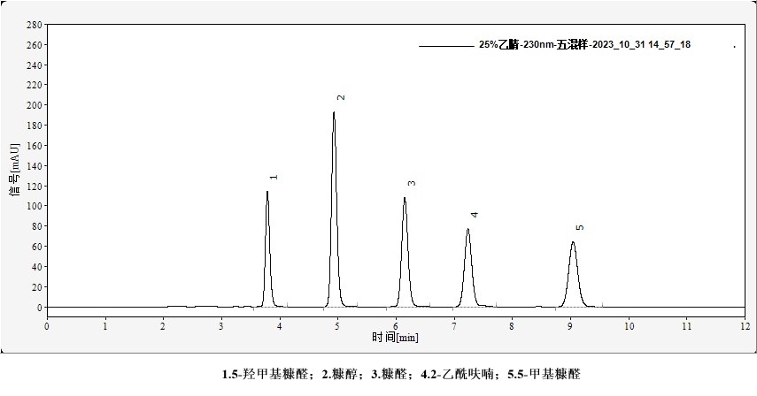糠醇、糠醛、5-甲基糠醛、5-羥甲基糠醛、2-乙酰呋喃