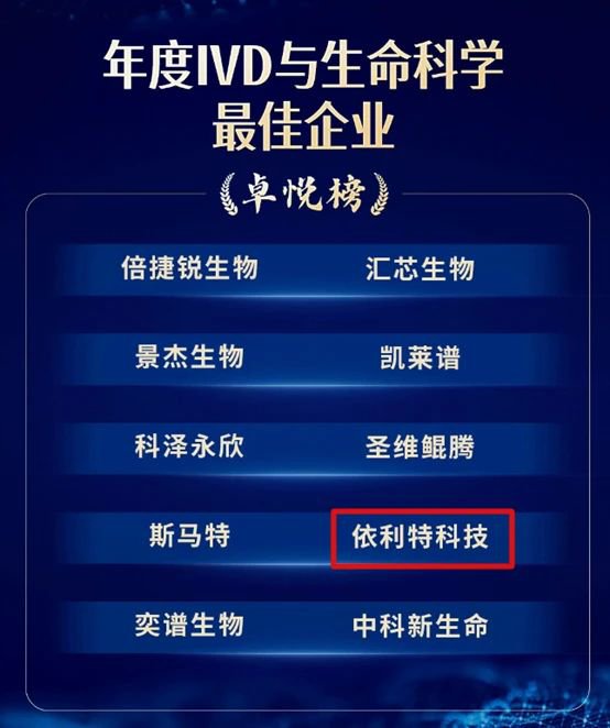 依利特榮登年度IVD與生命科學(xué)佳企業(yè)卓悅榜榮登第九屆醫(yī)療健康投資卓悅榜