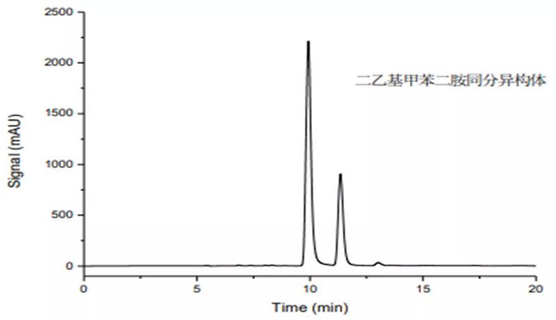 二乙基甲苯二胺是兩種異構體混合物,即3,5-二乙基-2,4-二氨基甲苯和 3,5-二乙基-2,6-二氨基甲苯,簡稱DETDA,長期暴露在空氣中顏色會變深,二乙基甲苯二胺易燃,腐蝕性強,皮膚、眼睛接觸能引起刺激和嚴重灼傷,誤服有害。依利特使用EClassical 3200液相色譜儀匹配經(jīng)典的SinoPak C18色譜柱,對二乙基甲苯二胺異構體進行分析檢測。