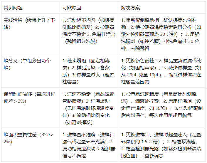 表格 4:HPLC 常見問題及解決方案