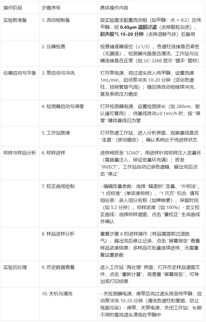 高效液相色譜儀操作工序:
