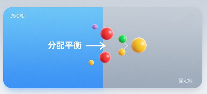 分配平衡:物質(zhì)會在流動相和固定相這兩相之間反復(fù)進行分配。?