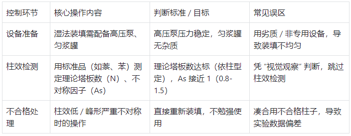 表 3:裝柱質(zhì)量控制關(guān)鍵步驟表