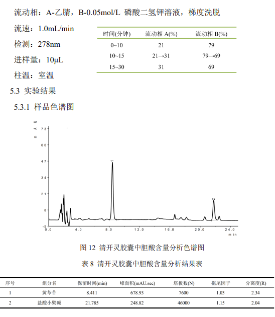 依利特使用新款的 EClassical 3200 液相色譜儀搭配 Supersil ODS2 和 SinoChrom ODS-BP 色譜柱,對清開靈膠囊中膽酸、梔子苷、黃芩苷含量進(jìn)行了分析檢測,結(jié)果顯示目標(biāo)物柱效高、峰形好,滿足定性定量分析的需求。