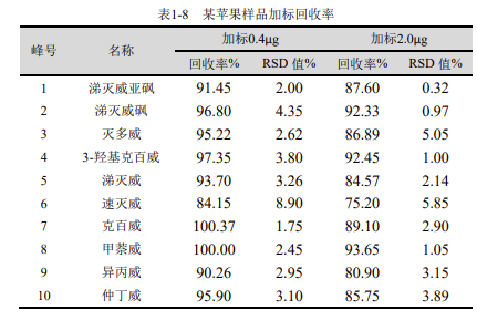 大連依利特分析儀器有限公司,結(jié)合《NY/T 761-2008 蔬菜和水果中有機(jī)磷、有機(jī)氯、擬除蟲菊酯和氨基甲酸酯類農(nóng)藥多殘留的測定》方法及相關(guān)文獻(xiàn)中關(guān)于農(nóng)殘測定的要求,建立的氨基甲酸酯分析系統(tǒng),提出了蔬果中氨基甲酸酯類農(nóng)藥殘留檢測的全套解決方案,并以蘋果為樣品進(jìn)行了檢測,實驗結(jié)果能夠達(dá)到標(biāo)準(zhǔn)中各項指標(biāo)要求。