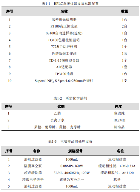 為滿足對(duì)蜂蜜中果糖、葡萄糖、蔗糖、麥芽糖含量的測(cè)定,依利特公司結(jié)合 GB 5009.8-2016《食品安全國(guó)家標(biāo)準(zhǔn) 食品中果糖、葡萄糖、蔗糖、麥芽糖、乳糖的測(cè)定》及《中國(guó)藥典》2015 版第一部相關(guān)標(biāo)準(zhǔn),采用示差折光檢測(cè)器,經(jīng)氨基色譜柱分離,根據(jù)保留時(shí)間定性和峰面積定量,提出了蜂蜜中果糖、葡萄糖、蔗糖、麥芽糖含量測(cè)定的全套 HPLC 解決方案,包括前處理設(shè)備、試劑、前處理方法直至液相色譜方法。相關(guān)人員可參考本實(shí)驗(yàn)中的方法,進(jìn)行蜂蜜中果糖、葡萄糖、蔗糖、麥芽糖含量的檢測(cè)。