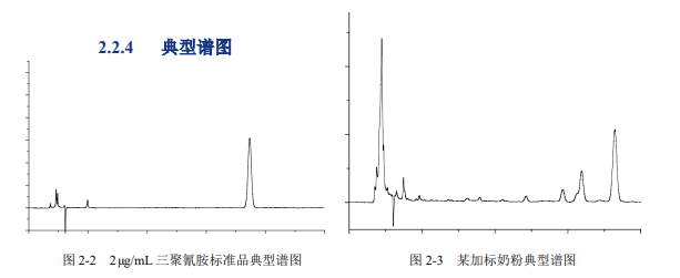樣品測(cè)試過程中,應(yīng)保證其三聚氰胺含量在該線性范圍之內(nèi),若超出該范圍,需將樣品進(jìn)一步稀釋或濃縮。