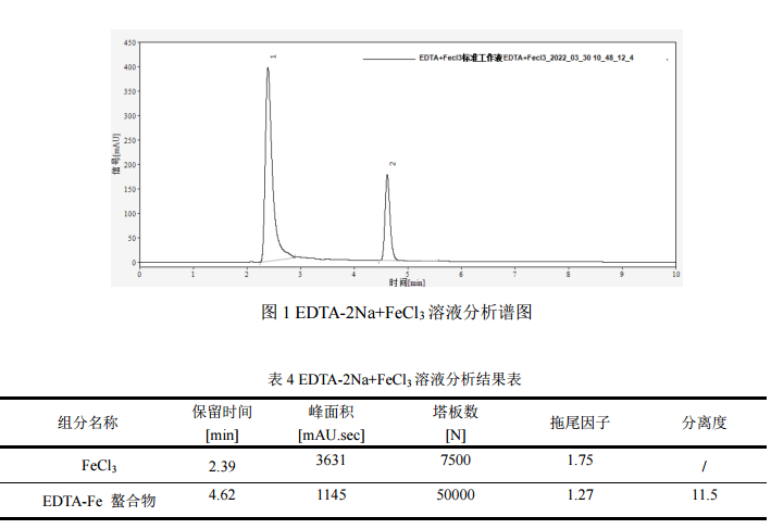 本實(shí)驗(yàn)采用依利特 Eclassical 3200 高效液相色譜儀搭配 SinoPak BEH AQ-C18 色譜柱對(duì)食品中的乙二胺四乙酸二鈉進(jìn)行分析檢測(cè),結(jié)果表明:Eclassical 3200 高效液相色譜儀穩(wěn)定性較好,分析結(jié)果峰型良好、分離度優(yōu)異(分離度 11.5),滿足定性與定量分析的需求。