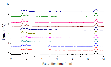 圖9-3 苯并芘標(biāo)準(zhǔn)品進(jìn)樣重復(fù)性譜圖(n=11)