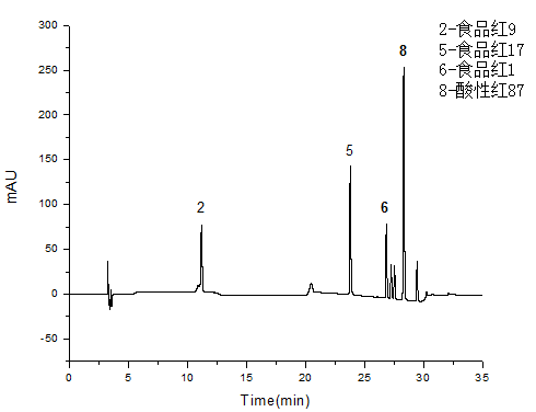 食品紅9、食品紅17、食品紅1、酸性紅87為520nm;