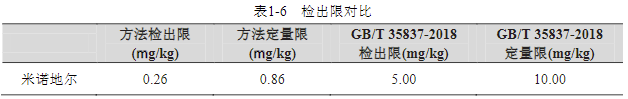 從以上結(jié)果可知,本系統(tǒng)的米諾地爾檢測的靈敏度明顯低于國標中的要求,即符合檢測要求。