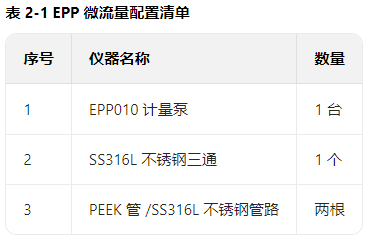 依利特通過(guò) EPP010 計(jì)量泵、SS316L 不銹鋼三通和 PEEK 管 / SS316L 不銹鋼管路,為 EPP 計(jì)量泵穩(wěn)定的微流量輸送提出了解決方案,供相關(guān)人員參考使用。