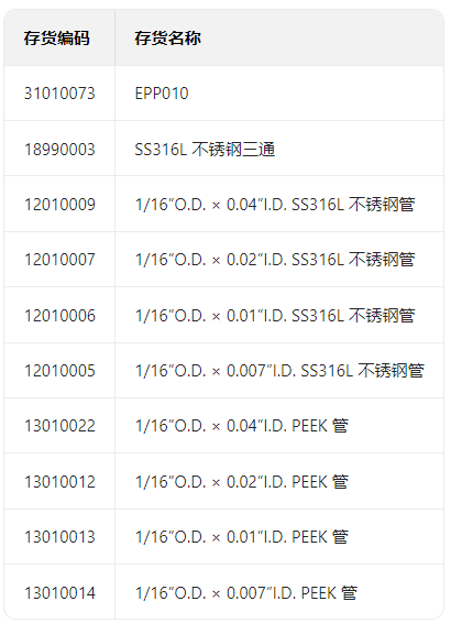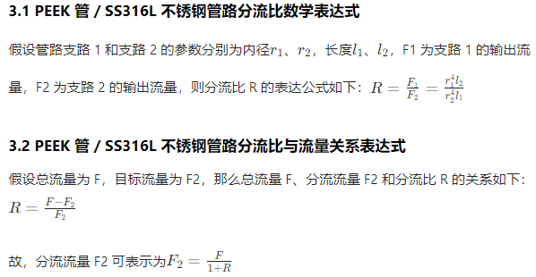 通過(guò) PEEK 管 / SS316L 不銹鋼管路分流比數(shù)學(xué)表達(dá)式計(jì)算,可選取內(nèi)徑為 0.04”I.D.、長(zhǎng)為 256mm 的 PEEK 管作為支路 1;內(nèi)徑為 0.01”I.D.、長(zhǎng)為 999mm 的 PEEK 管作為支路 2,則支路 2 的流量即為 1μL/min。