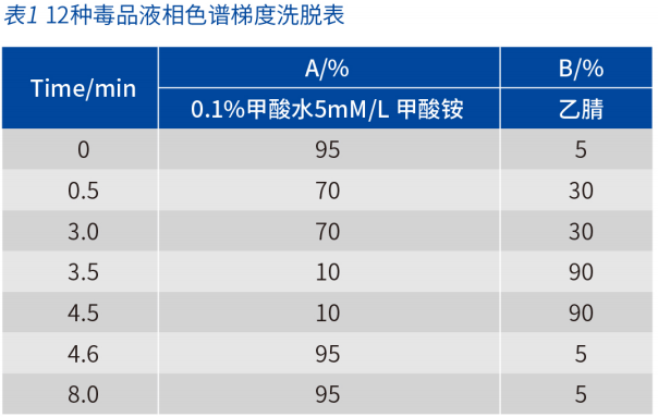 流動(dòng)相 A: 0.1% 甲酸溶液含 5mM/L 甲酸銨