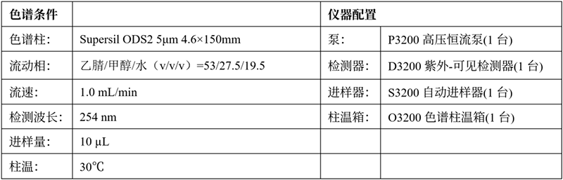 使用依利特新的EClassical 3200高效液相色譜儀,搭配Supersil ODS2色譜柱,能很好的檢測出目標物,且峰形良好,滿足定性定量分析的要求。