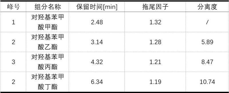 對(duì)羥基苯甲酸甲酯系列化合物,是白色或無(wú)色結(jié)晶粉末。在食品、化妝品、醫(yī)藥等行業(yè)一般作為殺菌、防腐劑使用。依利特使用EClassical 3200液相色譜儀匹配經(jīng)典的SinoPak C18色譜柱,對(duì)對(duì)羥基苯甲酸甲酯系列化合物進(jìn)行分析檢測(cè)。