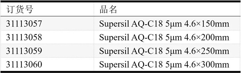 如上所示,使用Supersil AQ C18色譜柱再搭配蒸發(fā)光檢測(cè)器,硫酸慶大霉素標(biāo)準(zhǔn)品中四種組分分離度較好,且峰形很好。
