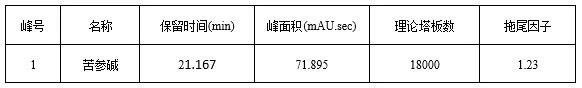 系統(tǒng)適用性溶液色譜圖中,理論塔板數(shù)按苦參堿峰計算應不低于4000。